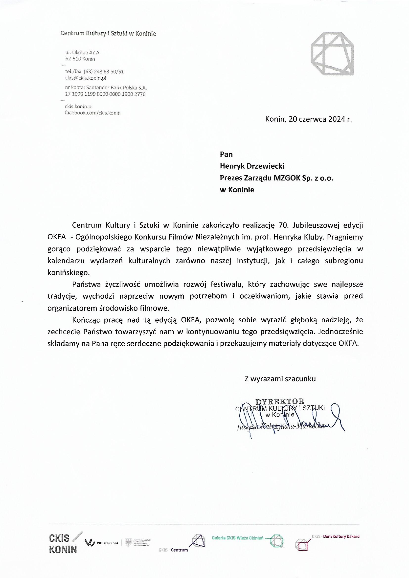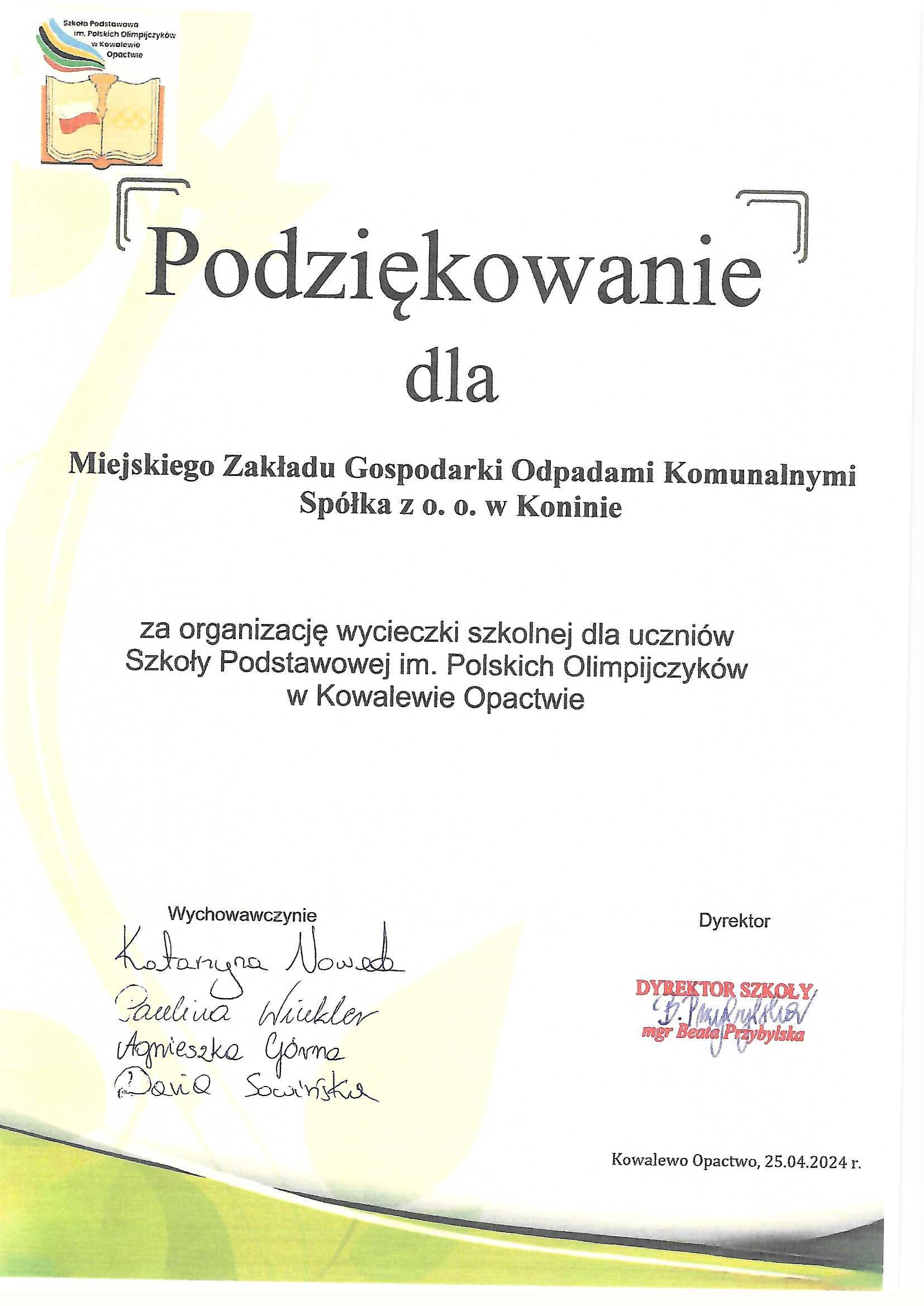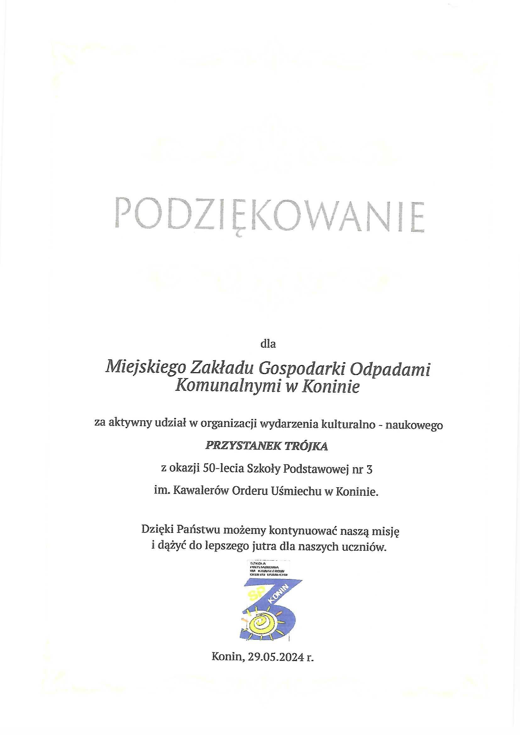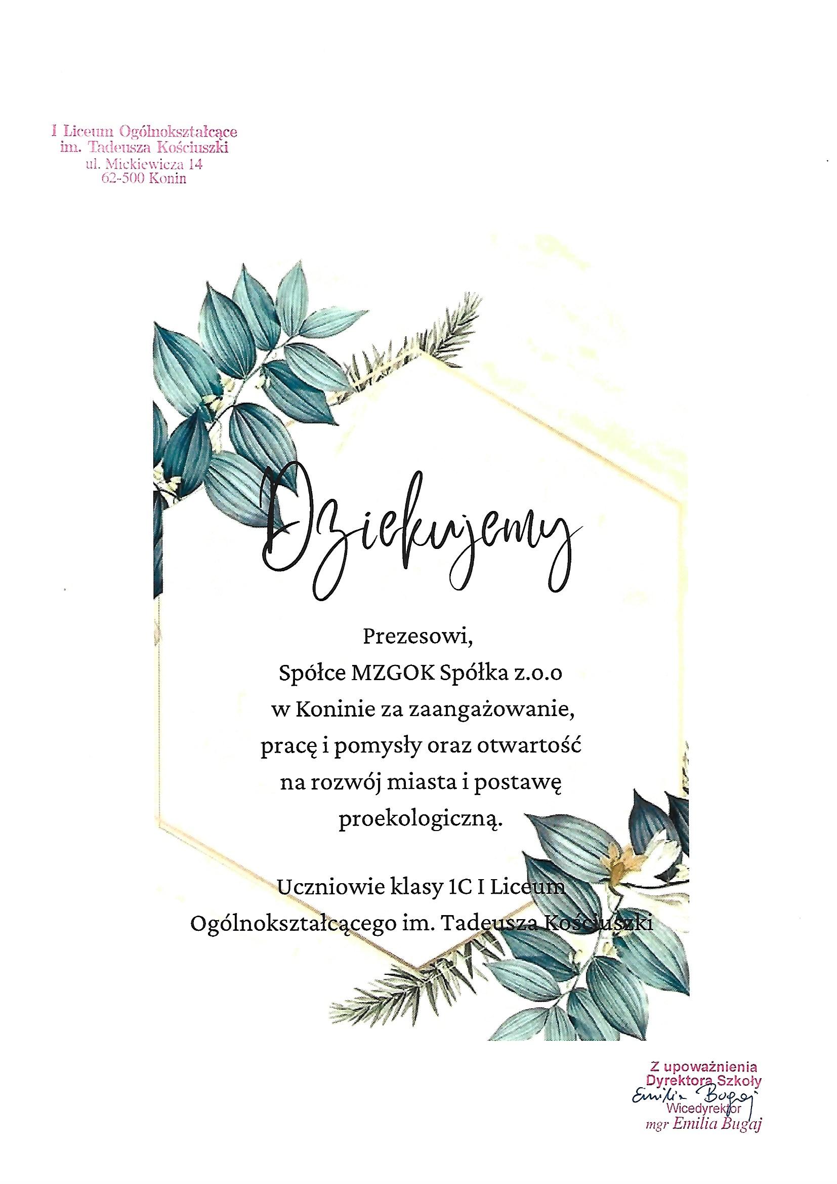 Podziękowania dla Spółki