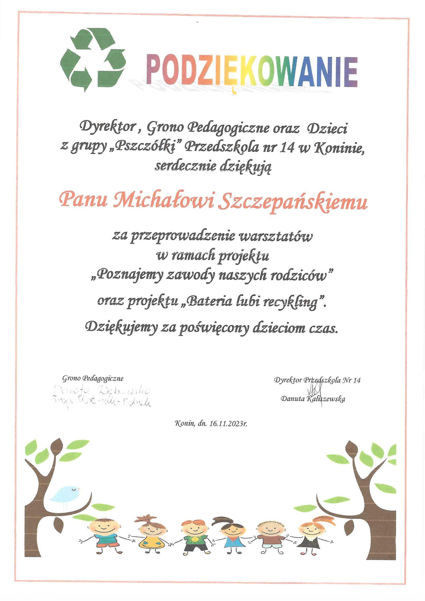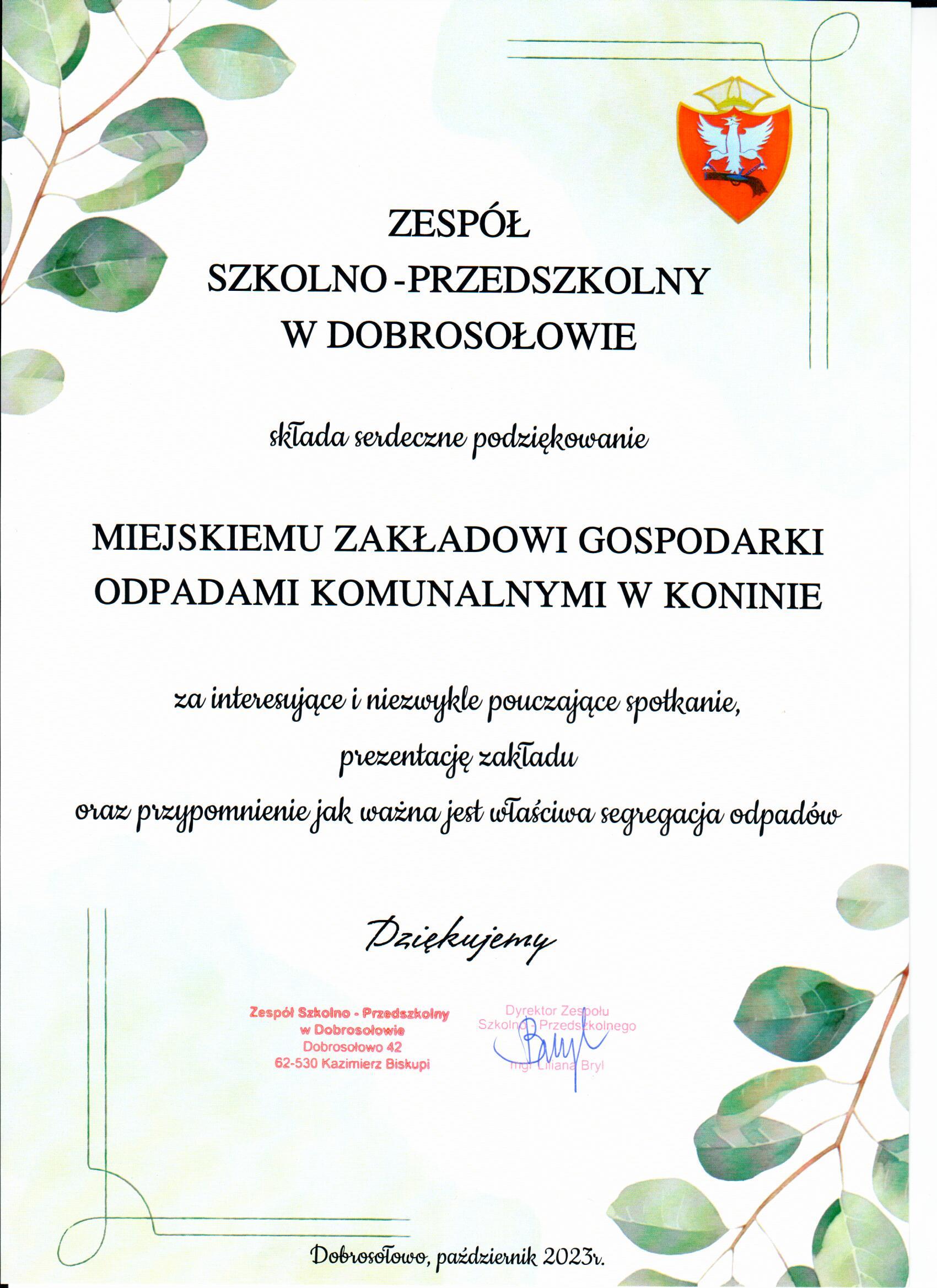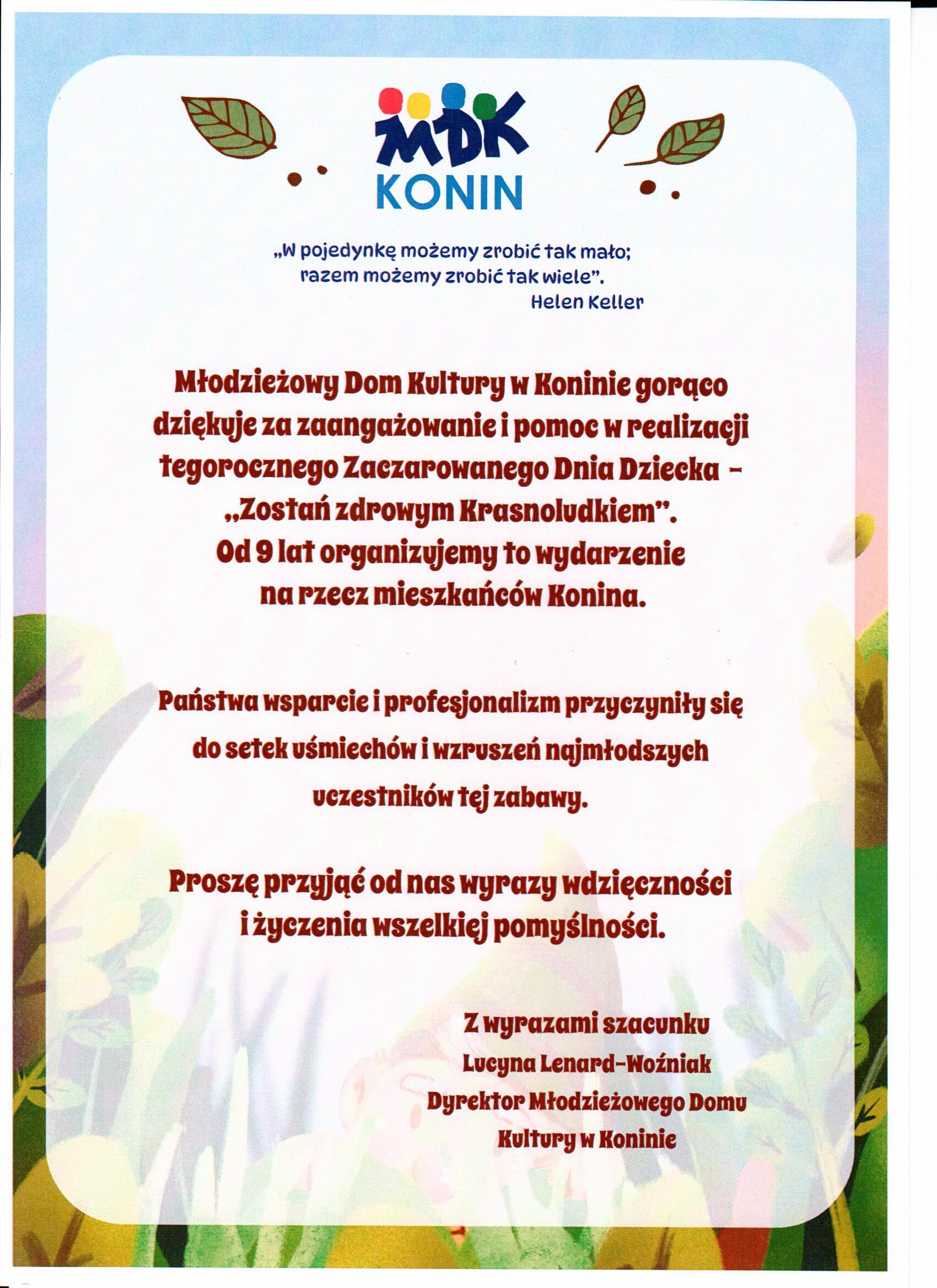 Podziękowania dla Spółki