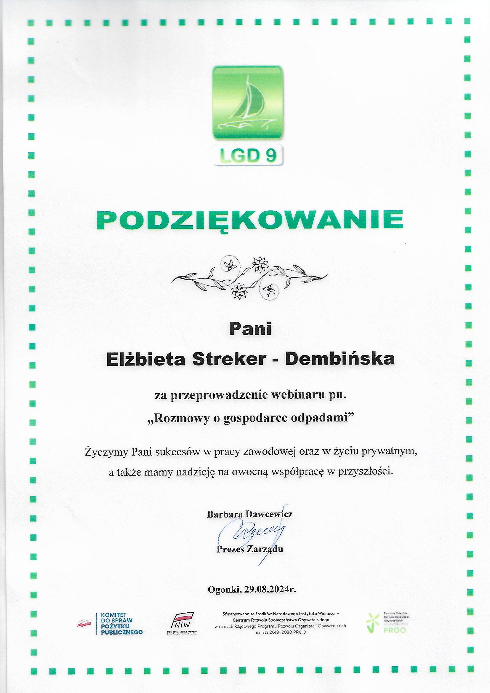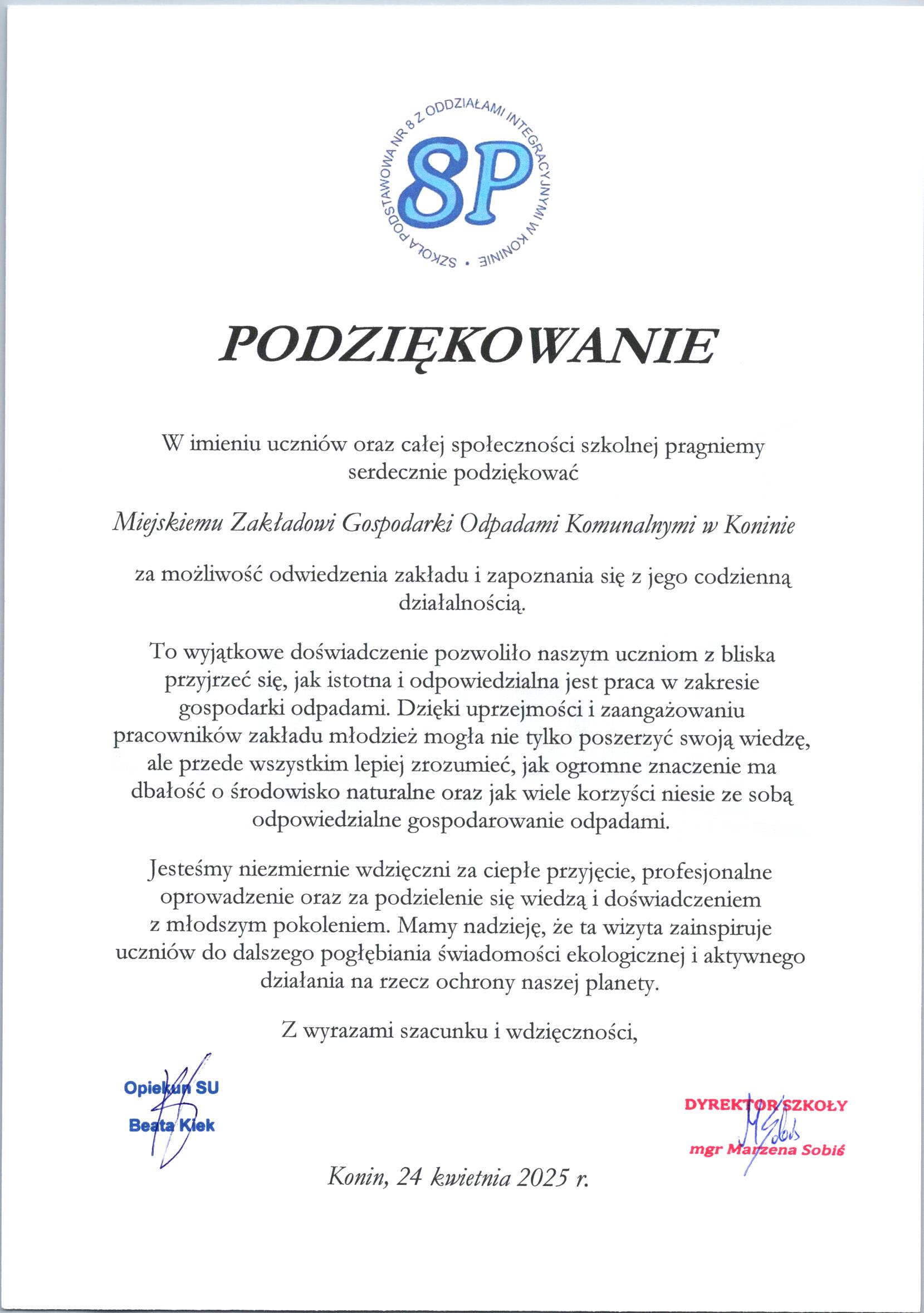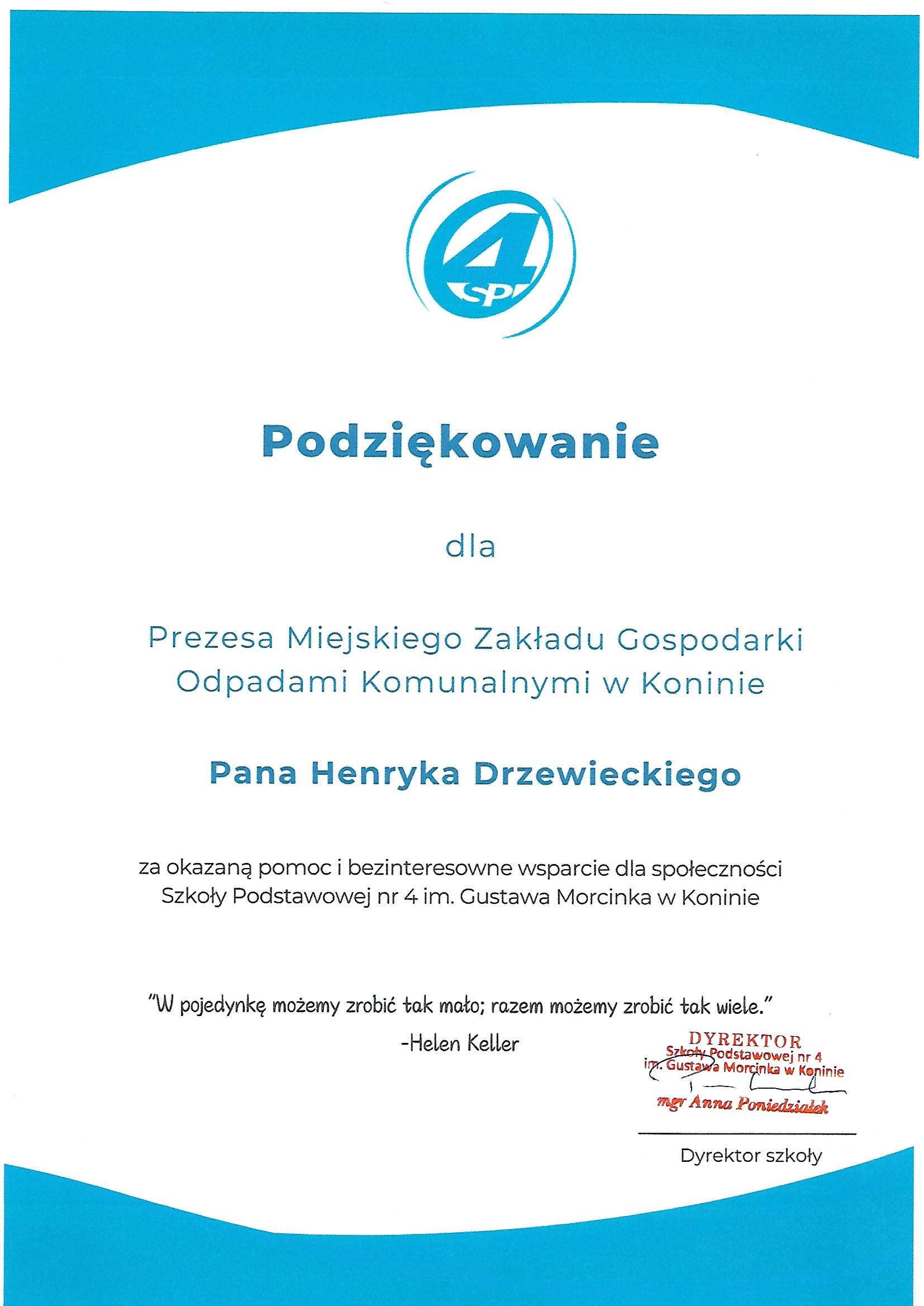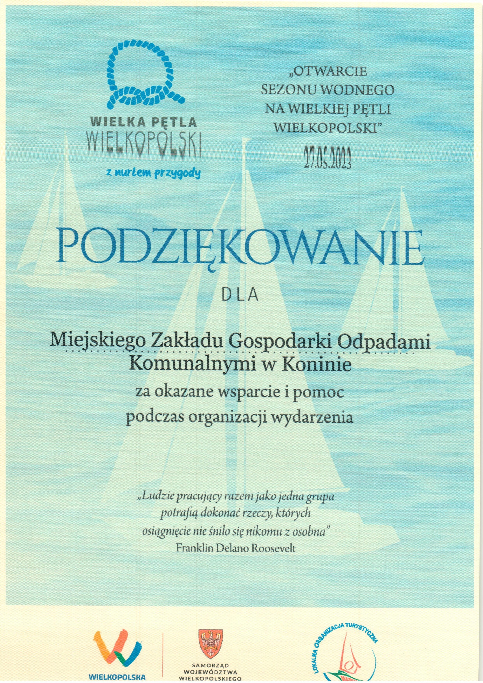 Podziękowania dla Spółki