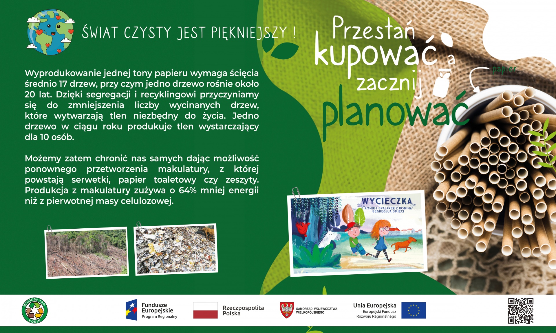 Dzięki dofinansowaniu z Wielkopolskiego Regionalnego Programu Operacyjnego na lata 2014-2020, nasz zakład zrealizował projekt „Świat czysty jest piękniejszy!”, którego celem było systematyczne zwiększanie społecznej świadomości i odpowiedzialności w zakresie właściwego gospodarowania odpadami komunalnymi.