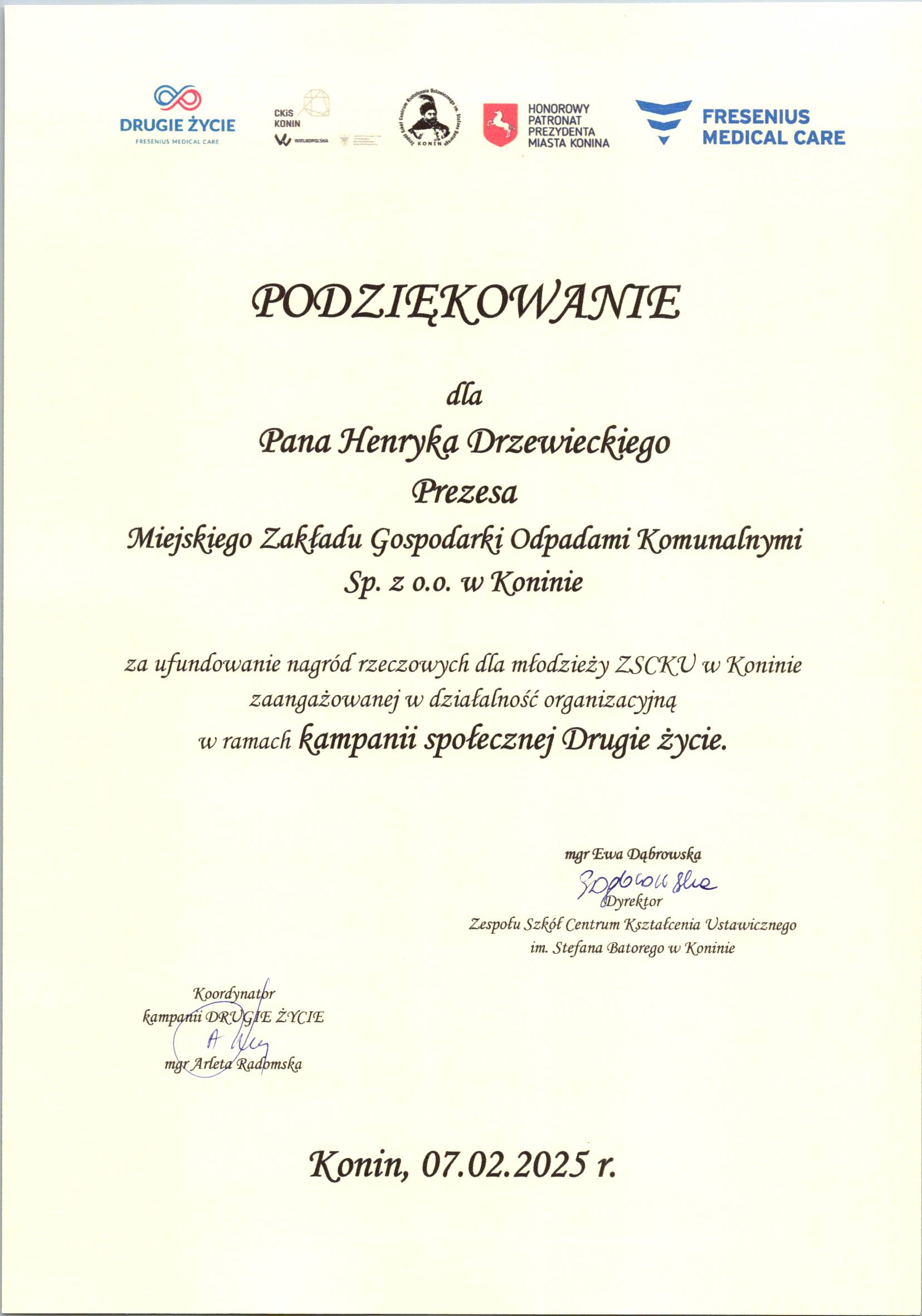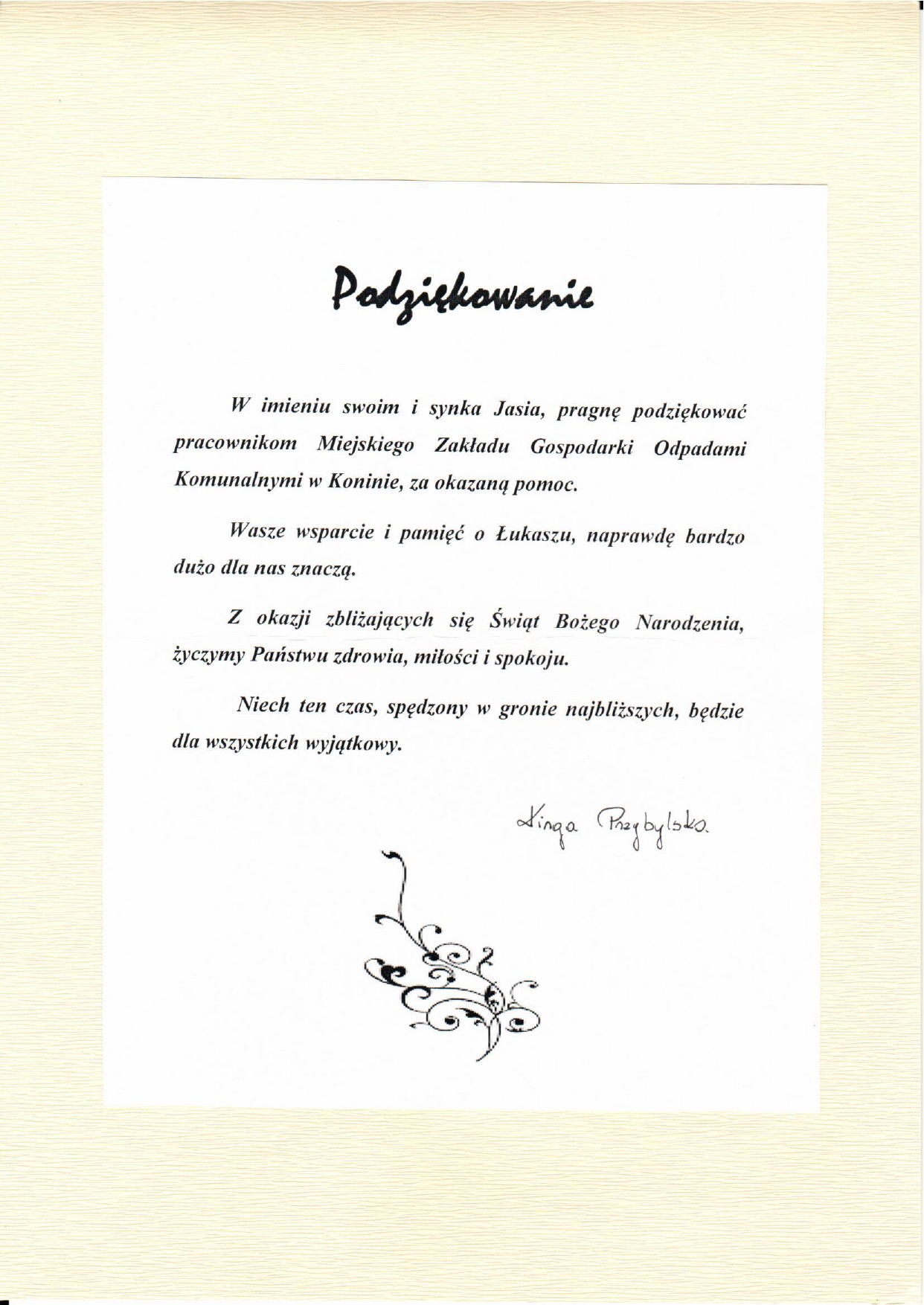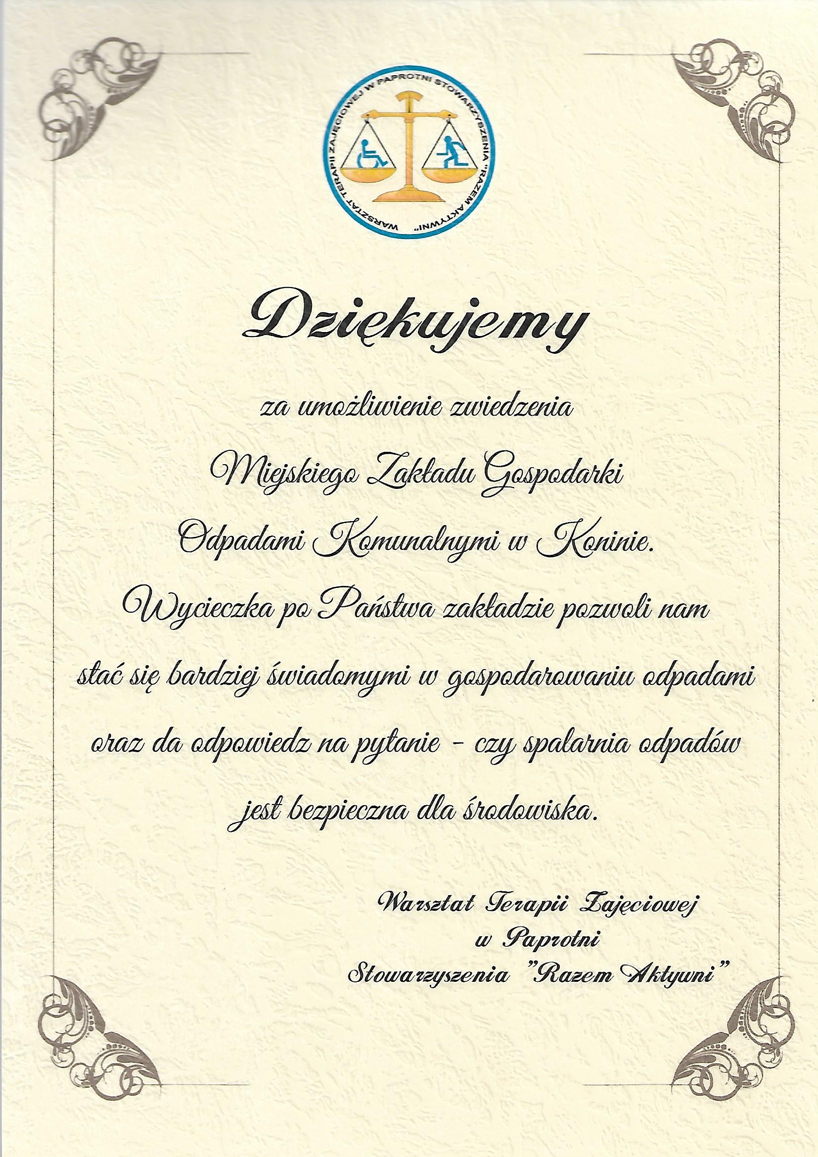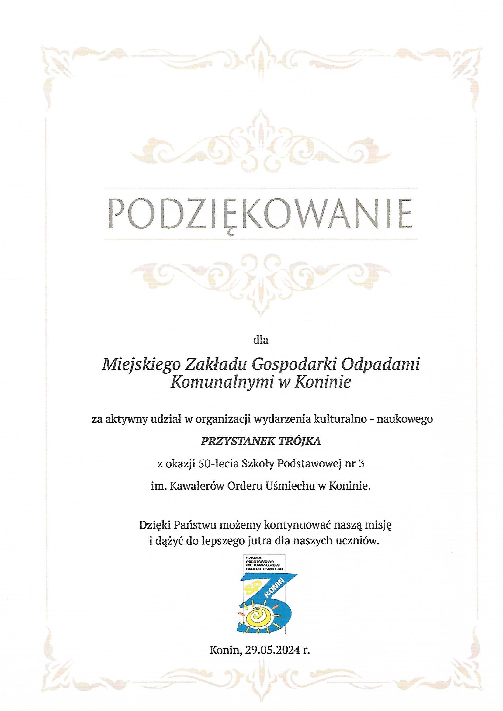 Podziękowania dla Spółki