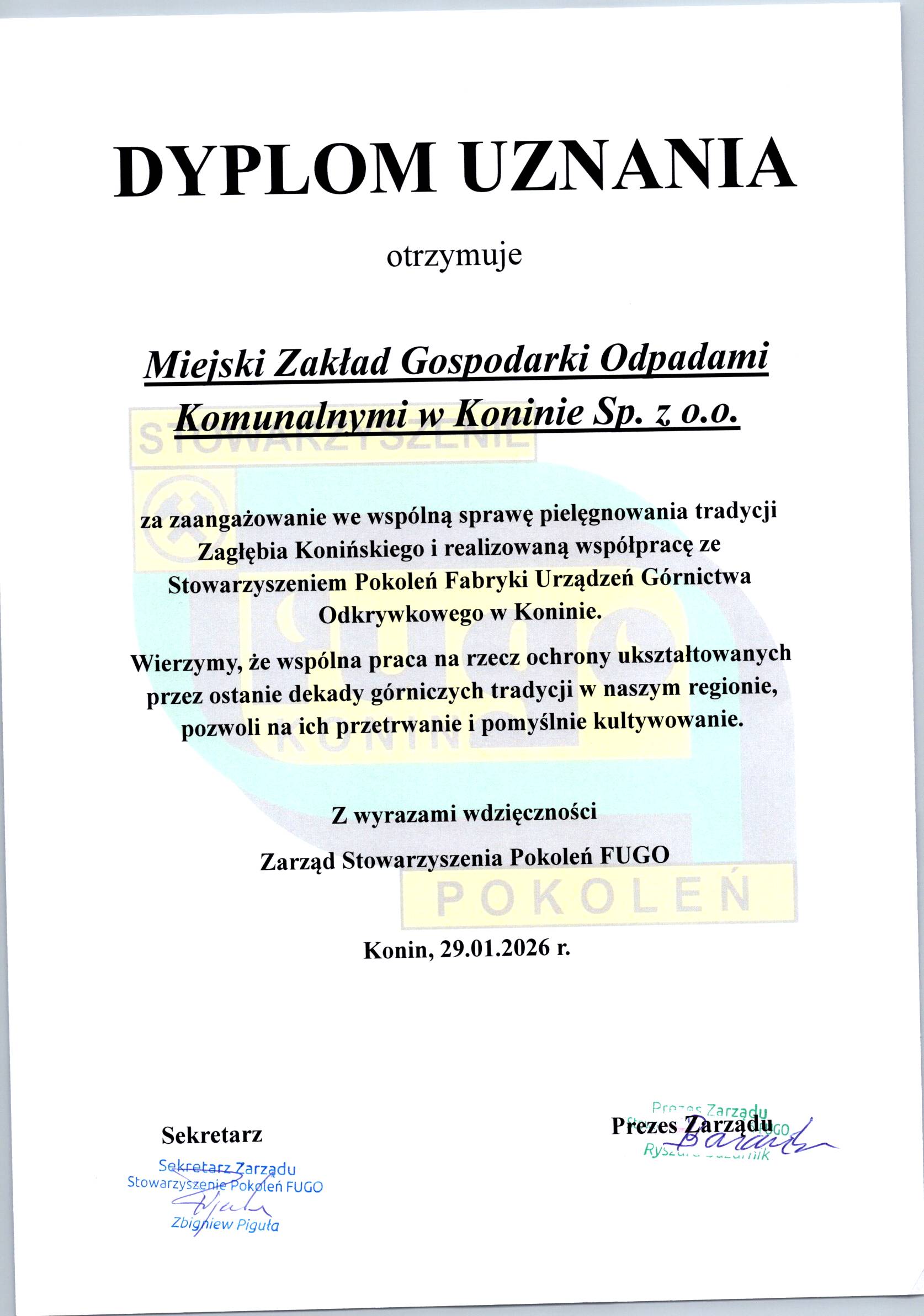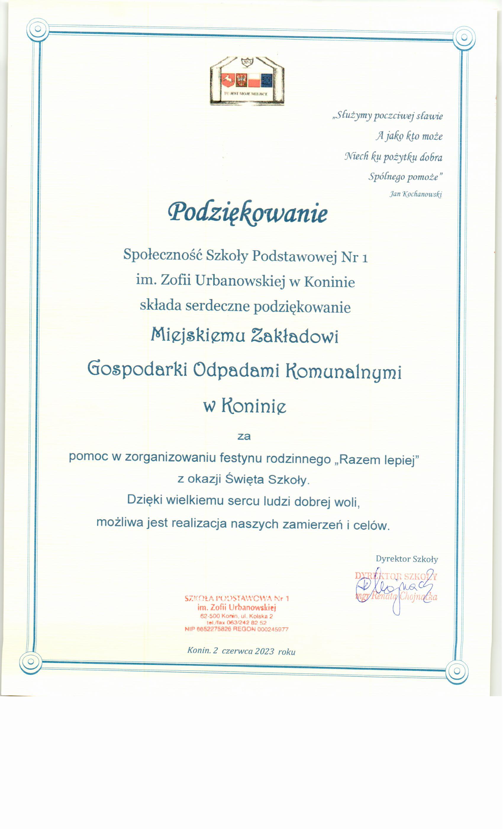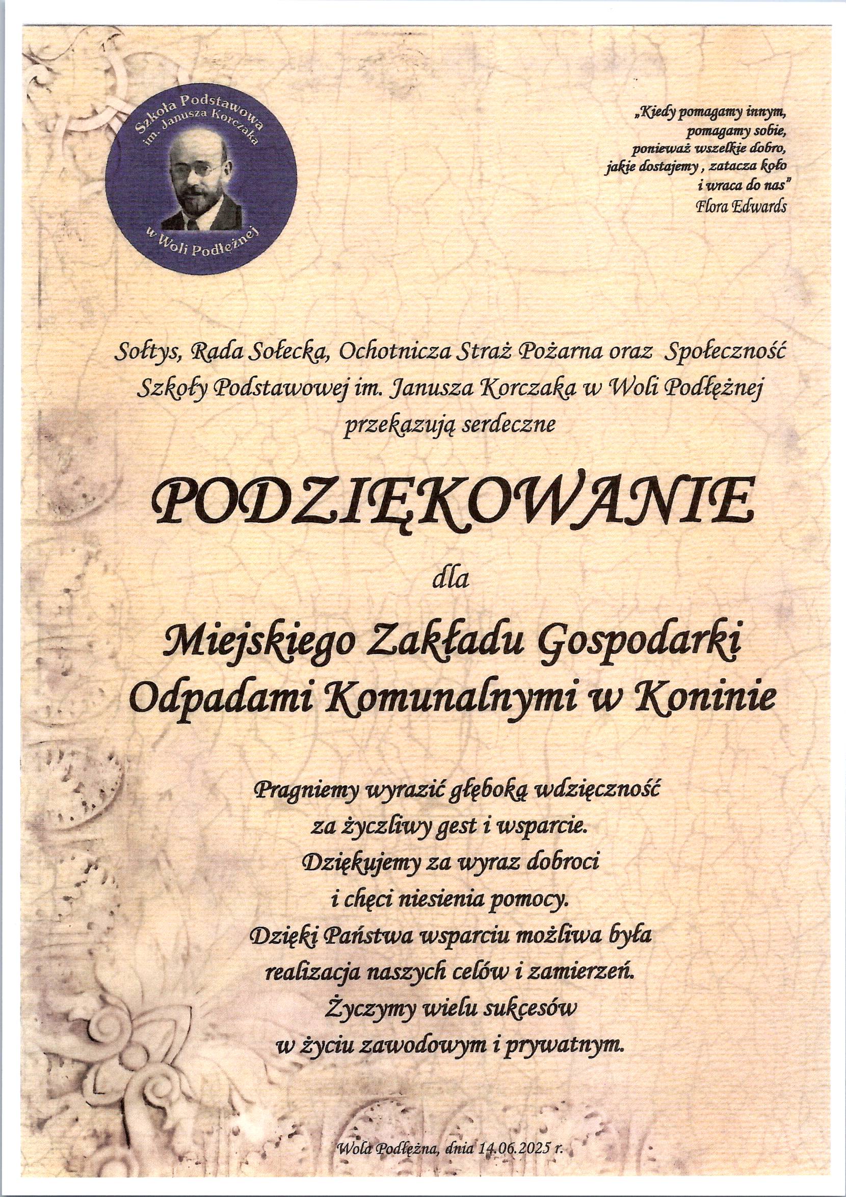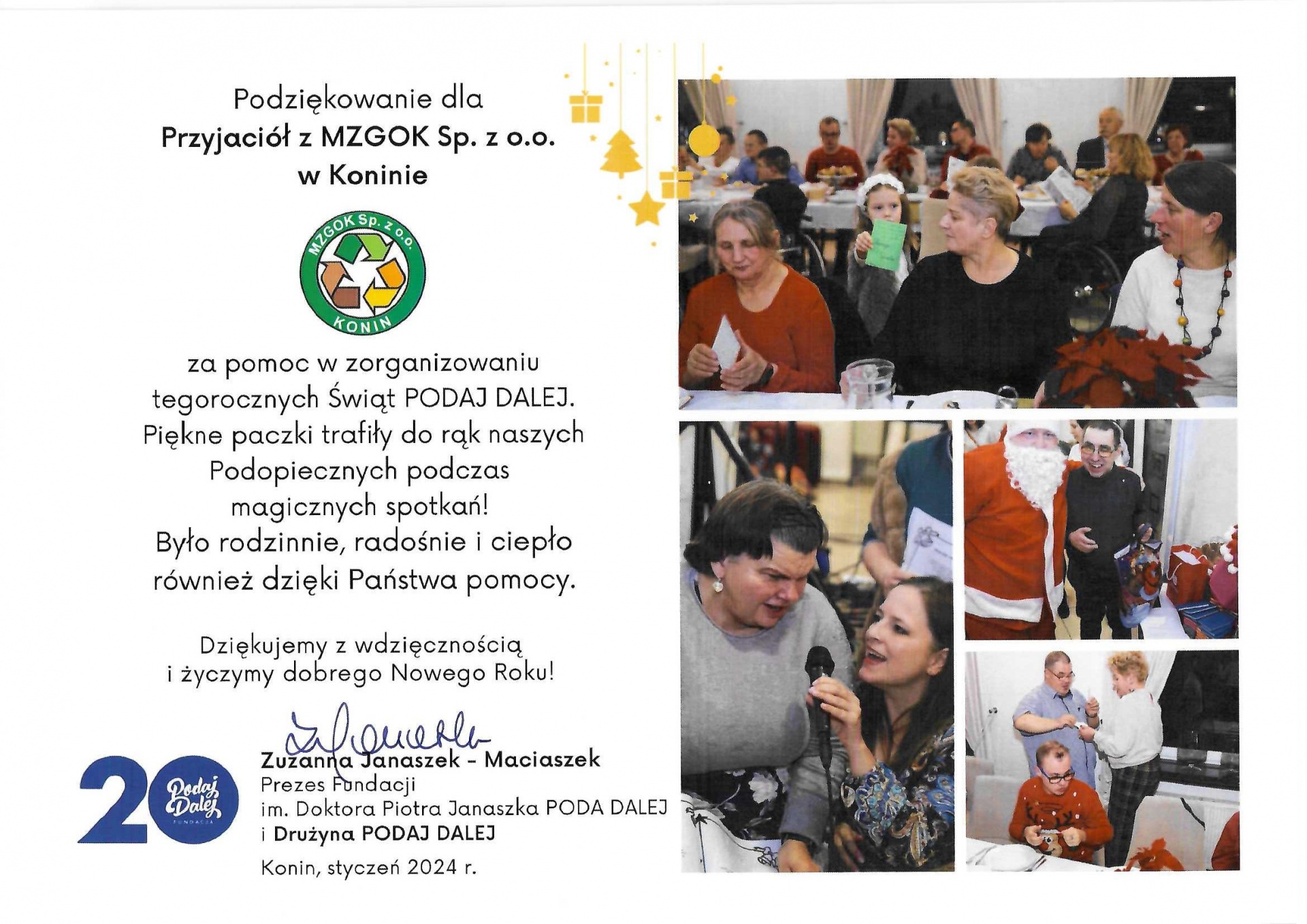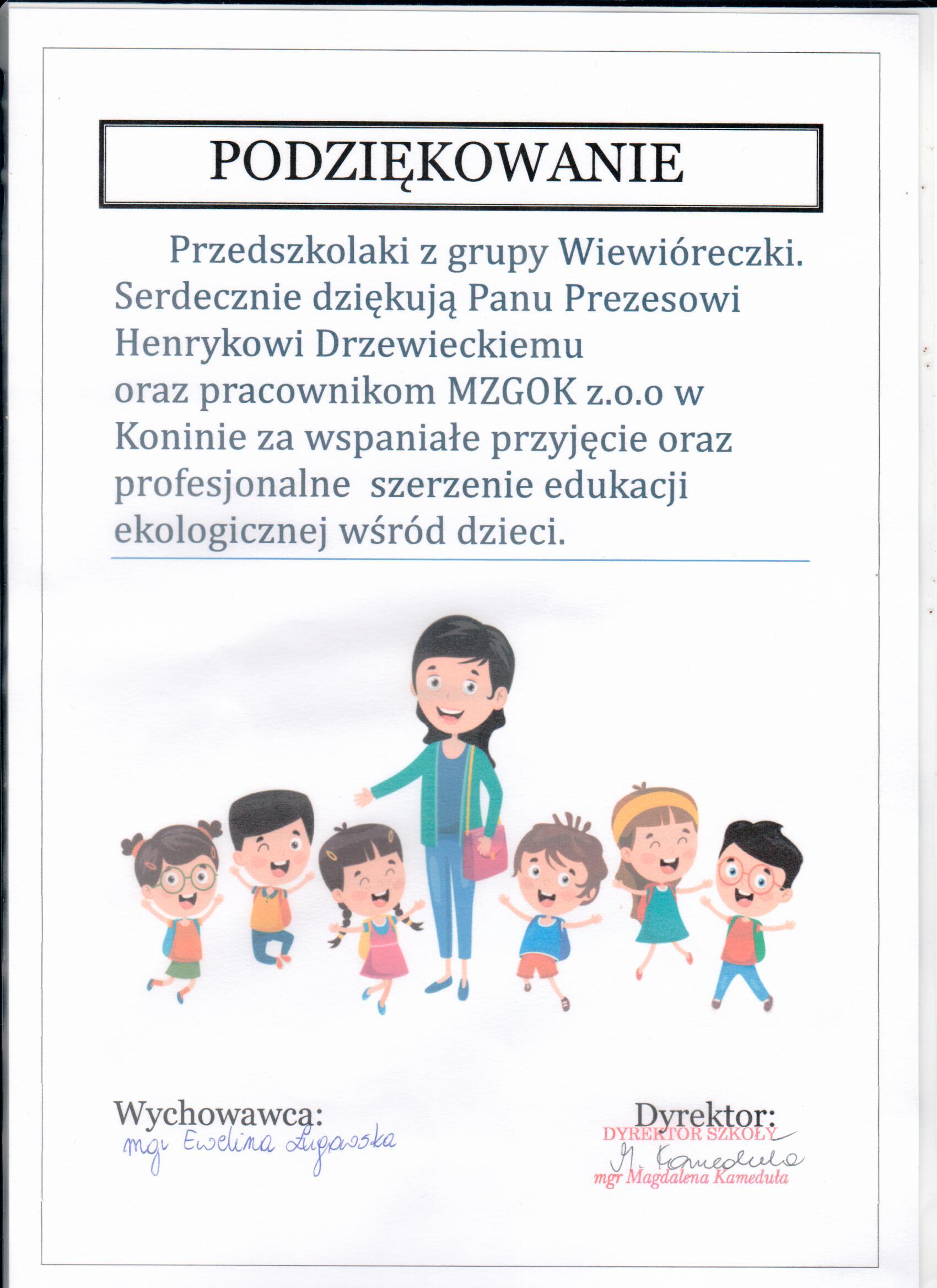Podziękowania dla Spółki