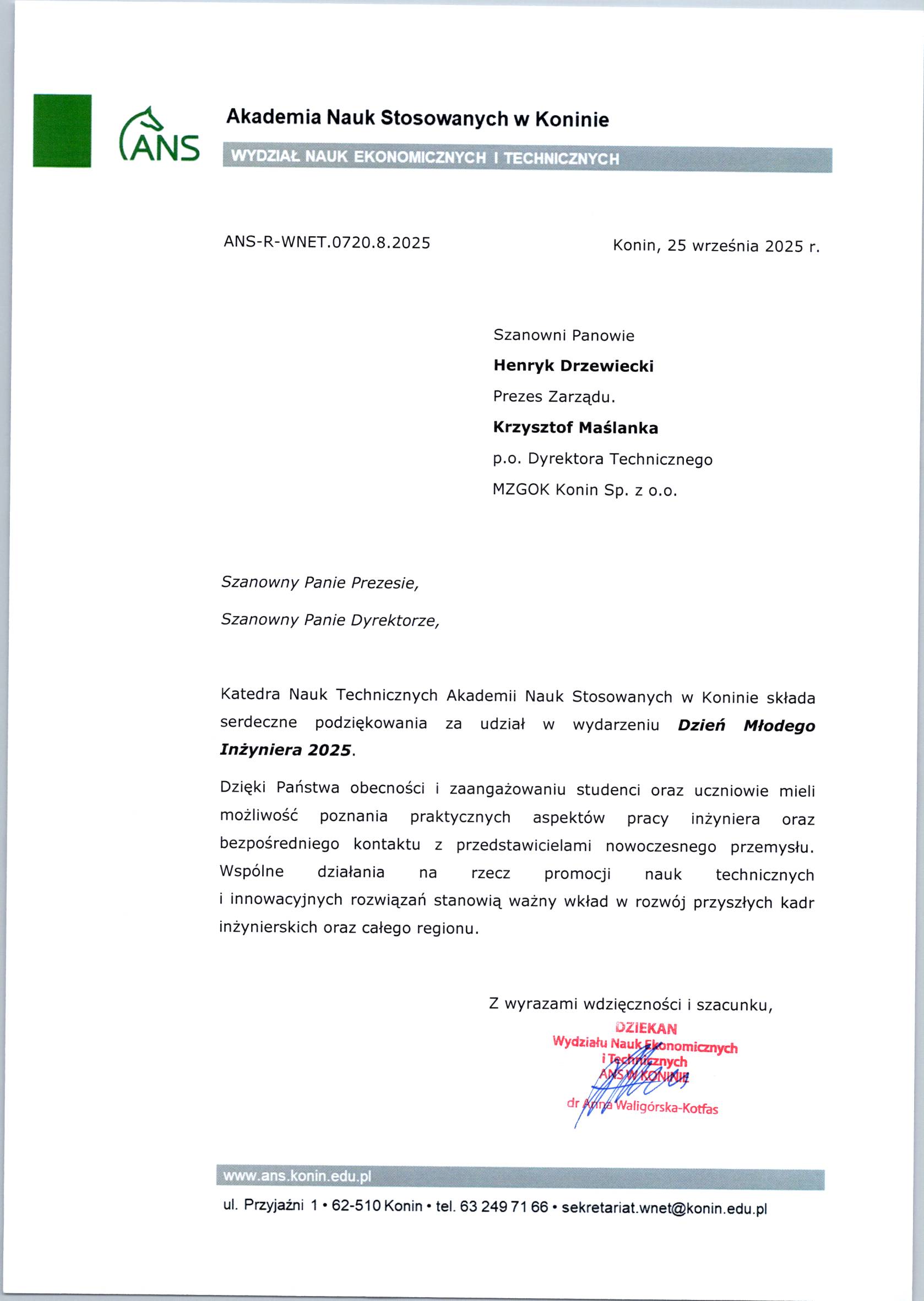 23 września w Akademii Nauk Stosowanych w Koninie odbyła się trzecia edycja Dnia Młodego Inżyniera wydarzenie, które na stałe wpisało się w kalendarz edukacyjnych inicjatyw naszego regionu. To wyjątkowe spotkanie zgromadziło dzieci, młodzież i dorosłych, dając im szansę odkrywać świat inżynierii poprzez warsztaty, pokazy i inspirujące prezentacje.Nie mogło zabraknąć tam Naszego zakładu,który z radością wspiera młodych pasjonatów nauk technicznych i chętnie przybliża specyfikę pracy inżyniera. Jesteśmy dumni, że mogliśmy uczestniczyć w wydarzeniu, które rozwija ciekawość i pokazuje, jak ważną rolę odgrywa inżynieria w codziennym życiu.Cieszy nas ogromne zainteresowanie szkół z Konina i okolic – to dowód na to, że młode pokolenie chętnie sięga po wiedzę i inspiracje. Dziękujemy organizatorom za zaproszenie i już z niecierpliwością czekamy na kolejną edycję.